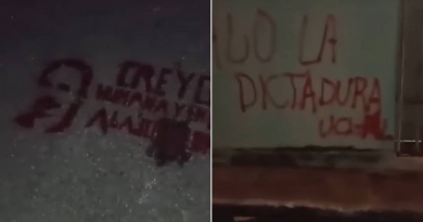 A poster against Díaz-Canel is painted in Santiago de Cuba
