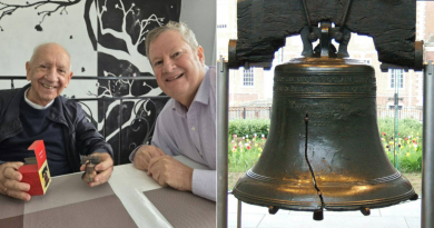 Mike Hammer gifts a replica of the "Bell of Freedom" to the bishop of Holguín